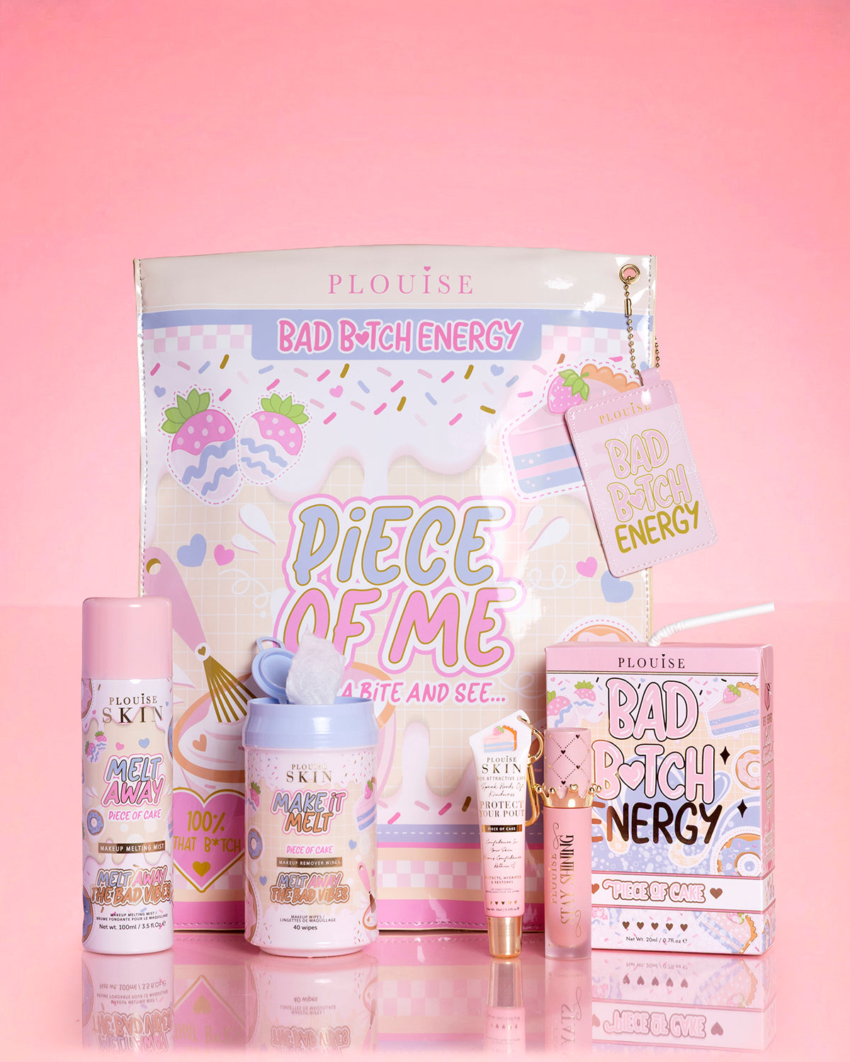 Spritz Melt Away Melting Mist onto the skin, wipe away makeup using the Make It Melt Wipes, then finish with the Bad Bitch Energy Lip Duo for the ultimate hydrated pout.