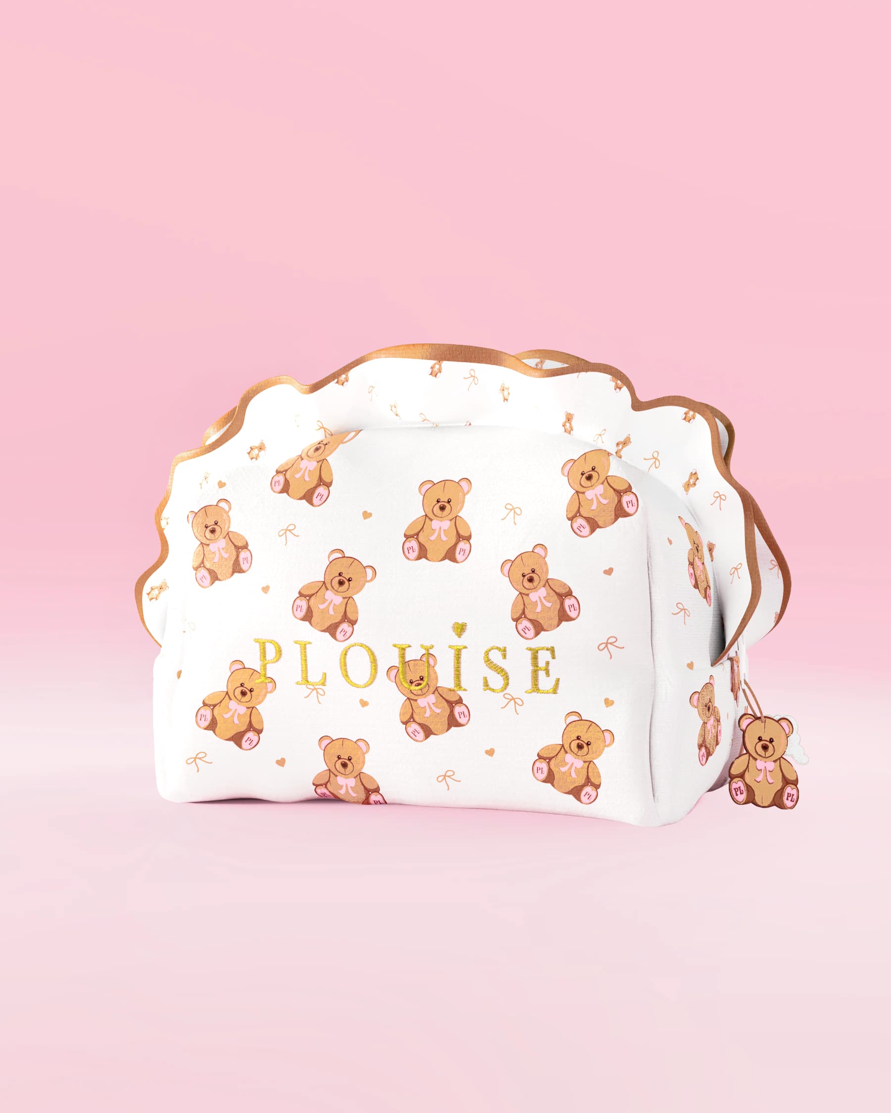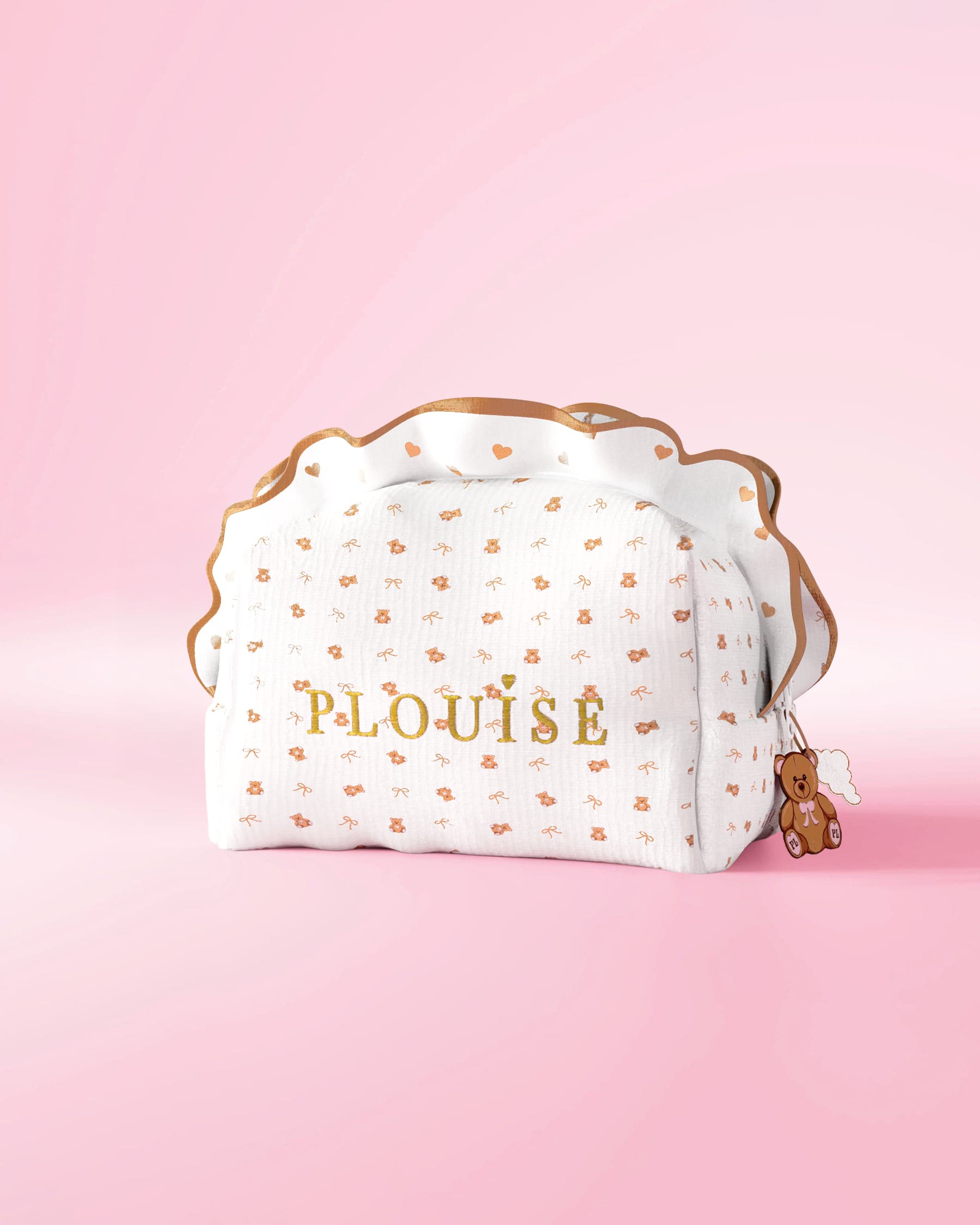 Każda torba jest wykonana z miękkiego białego materiału, wykończona falbanką i haftowanymi detalami marki i zaprojektowana tak, aby Twoja pielęgnacja skóry lub makijaż były zabawne, stylowe i zorganizowane. Wybierz pomiędzy odważne, duże nadruki Teddys dla maksymalnego efektu, lub urocze misie z małym nadrukiem dla subtelnego, zabawnego dotyku.